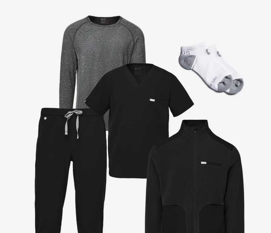 Figs scrubs are consistently voted BEST scrubs for nurses. Better yet, they're stylish, comfortable, and antimicrobial! Your special nurse will love The Fully Dressed Kit - it includes Chisec™ Three-Pocket Scrub Top, Tansen™ Jogger Scrub Pants, Makato Performance Underscrub, On-Shift Fleece Jacket, and Heathered Grey Ankle Socks.