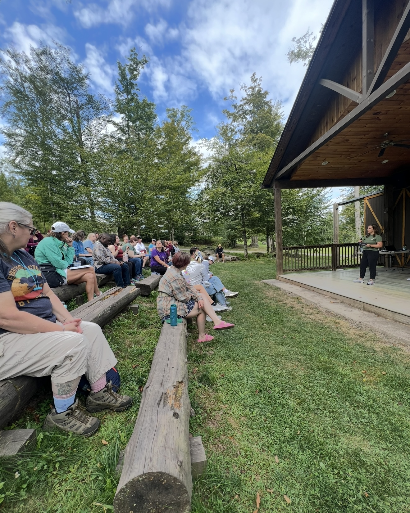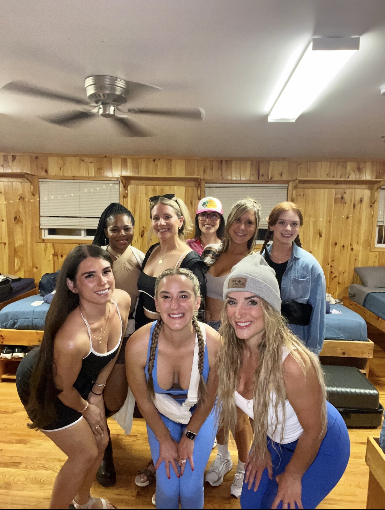We were greeted with swag bags full of creative goodies, including the adorable “Emotional Support Tote.” After a tour of the sprawling campgrounds, we settled into our cabins—12+ beds per room, 2 private bathrooms, and each one unique. Meeting cabinmates and exploring the space brought out our inner campers, and it was surprisingly comfy—definitely a step up from tent camping.